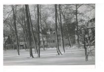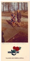 Yolande and Cornelia Beall - Christmas card color photograph of Yolande and Cornelia Beall showing the view from their front porch of Sunrise Park, 1973.