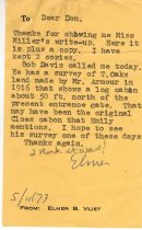 A letter to Lieb Grost - A letter to Lieb Grost, mostly likely from Elmer Vliet, regarding an article by Susan Dart concerning the house Ben Cloes built at 666 Maple. Vliet wanted additional information on the Cloes Brick yard and when Ben stopped making bricks and when Lieb's father stopped working for Ben.