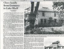 Cloes family from Germany to Lake Bluff - Article on early settlers of Lake Bluff including a picture of Cloes family home, 666 Maple Avenue. Lake Forest-Lake Bluff Mail Advertiser April 16, 1981