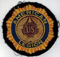 A 4 1/2 inch American Legion patch belonging to Tom Tincher. Tincher held many titles within the village of Lake Bluff: Village Board member, president of the Lake Bluff History Museum, cameraman and member of the American Legion where he was the Historian.
