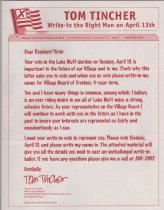 Advertisement Booklets for Tom Tincher - Advertisement Booklets for Tom Tincher - asking residents to write-in his name for the Village Board of Trustee, 4-year term position.